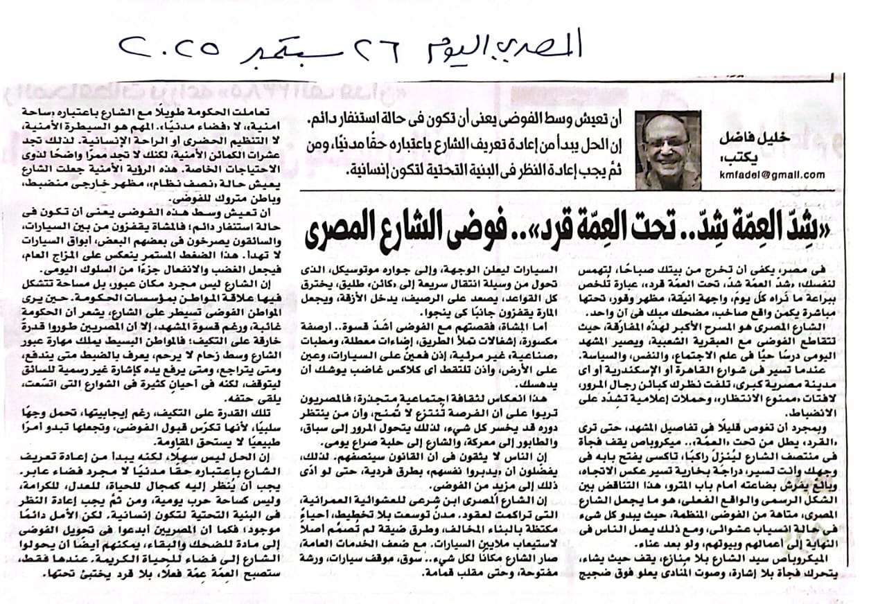 الشارع المصرى هو المسرح الأكبر لهذه المفارقة، حيث تتقاطع الفوضى مع العبقرية الشعبية، ويصير المشهد اليومى درسًا حيًّا فى علم الاجتماع، والنفس، والسياسة.