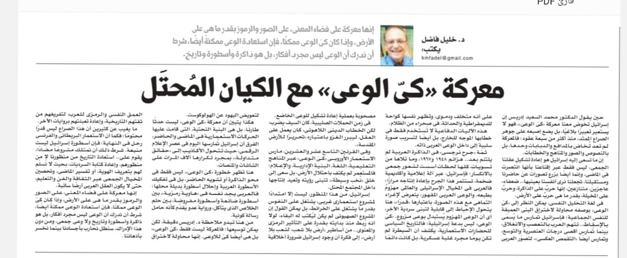 حين يقول الدكتور محمد السعيد إدريس إن إسرائيل تخوض معنا معركة «كىّ الوعى»، فهو لا يستعير تعبيرًا بلاغيًا، بل يضع إصبعه على جوهر الصراع الممتد، منذ أكثر من سبعة عقود؛ فالمعركة لم تعد تُخاض بالمدافع والدبابات وحدها، بل بالنصوص والصور والمناهج والخطابات.